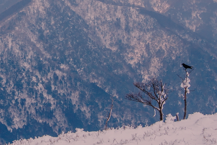 雪山のカラス